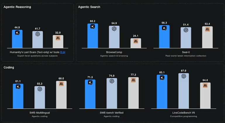 Moonshot’s new Kimi K2 Thinking, just changed the AI landscape. The fully open-source model is now outperforming GPT-5, Claude Sonnet 4.5, and Grok-4 on major benchmarks in reasoning, coding, retrieval, and agentic tool use.