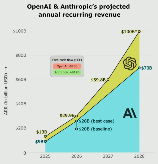 Anthropic and OpenAI are on wildly different financial paths. New documents show Anthropic is set to break even by 2028, while OpenAI expects $74B in operating losses that same year, about 75% of revenue driven by massive chip and data-center spending.