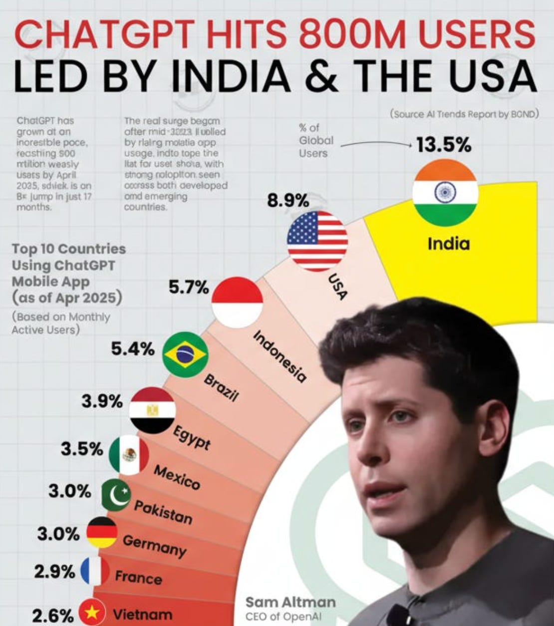 Plus: ChatGPT Users by Country: India leads the Chart.