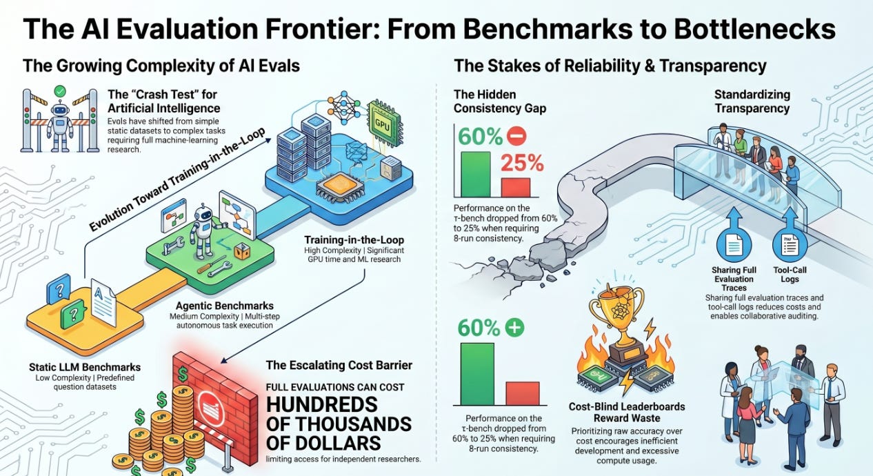 Creating an Accountability Barrier: The cost of comprehensive evaluations has escalated dramatically, with single runs costing thousands and full evaluations potentially hundreds of thousands of dollars. This financial burden creates a barrier for academic institutions, AI Safety Institutes, and independent journalists, limiting their ability to independently verify claims made by frontier AI labs. As the article states, “Whoever can pay for the evaluation gets to write the leaderboard”.