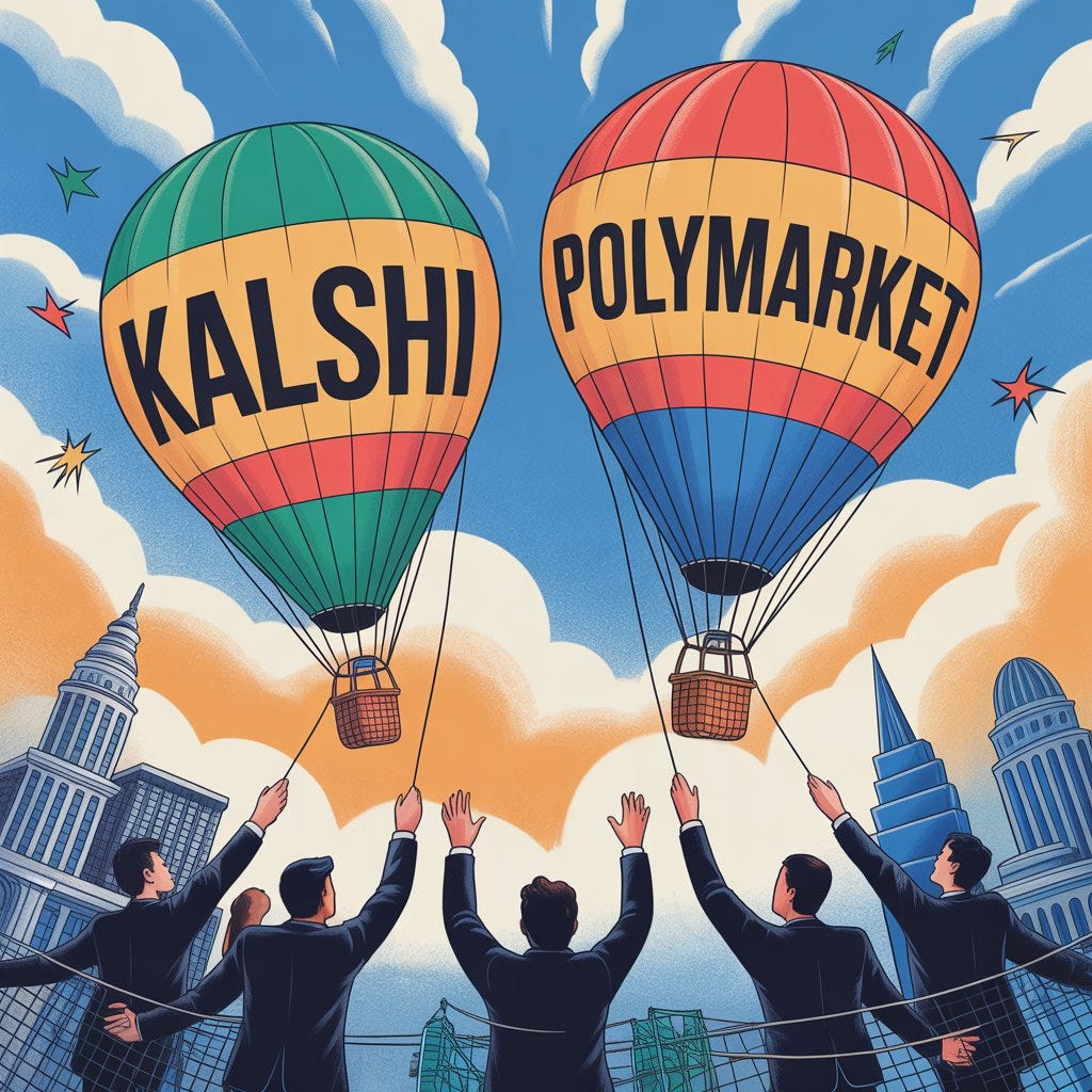 Kalshi and Polymarket, the two biggest players in the space, are both in early talks with investors about raising new rounds at valuations near $20 billion each, roughly double where they were just a few months ago.