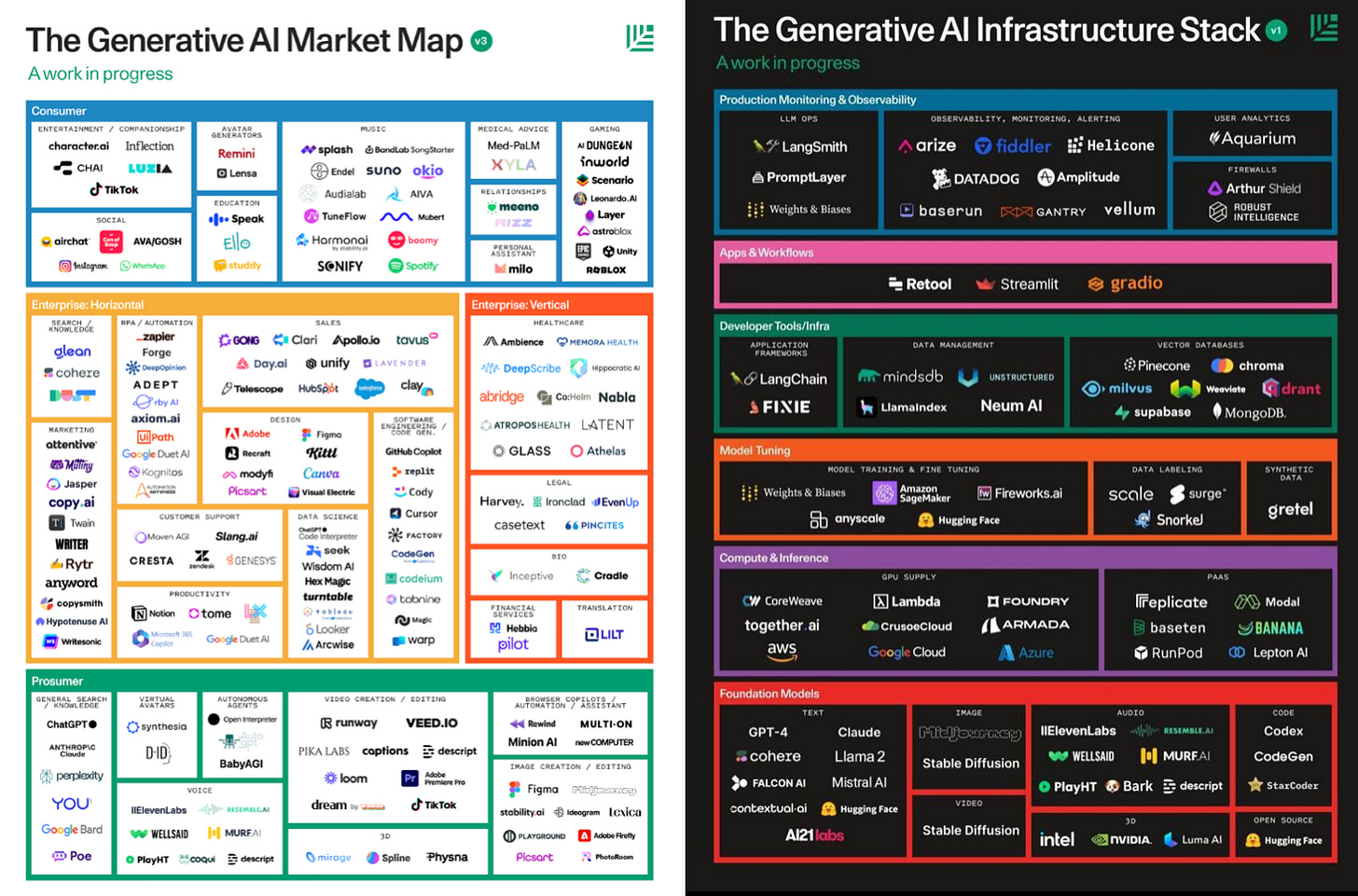 One year after predicting generative AI's impact, Sequoia Capital reflects on its progress. Early "Act 1" apps demonstrated novel technology, but "Act 2" apps are emerging to solve real human problems end-to-end. Killer apps proved a strong product-market fit but challenges remain around retaining users and proving daily value. Despite the hype wearing off, we remain steadfast believers in generative AI's long-term potential. Check the Apps in the above landscapes and check out linkedin for a link to every company.
