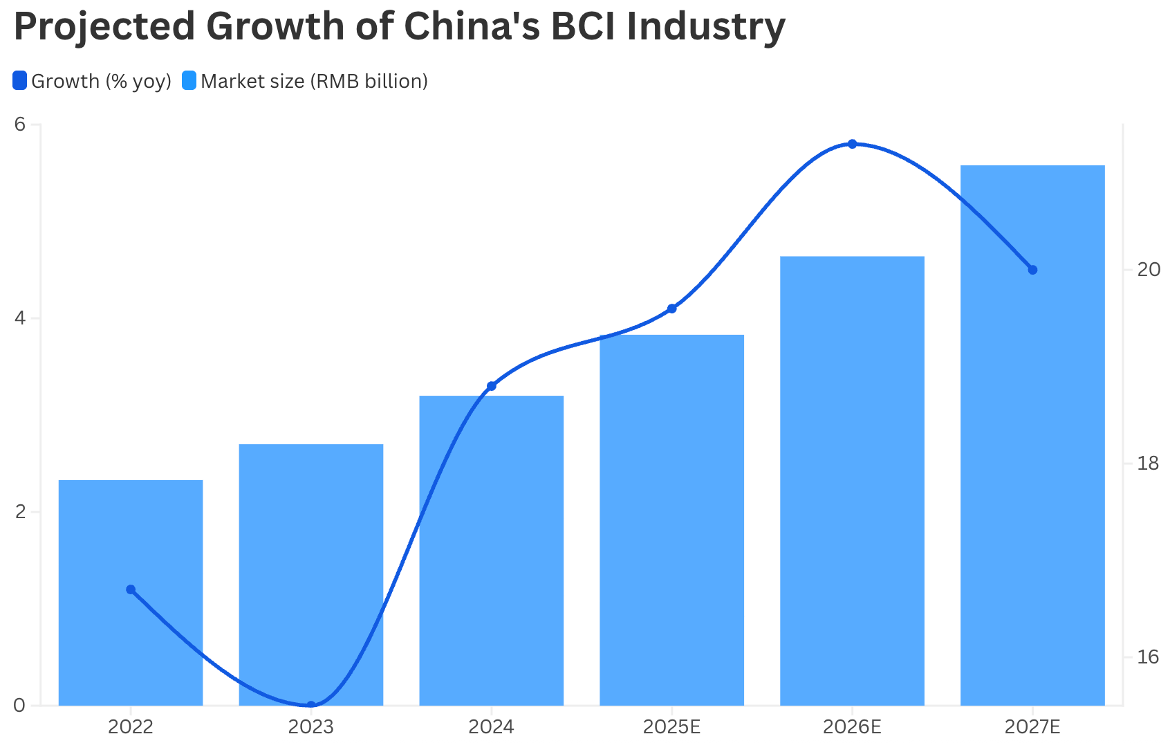 China’s brain-computer interface (BCI) industry is growing fast, projected to hit US$777 million by 2027, with 20% annual growth. Backed by strong government support and over 50% of global corporate BCI patents, China is positioning BCIs as a key pillar in its tech strategy.