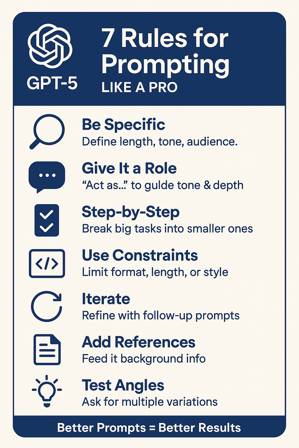 GPT-5 is powerful, and it has come with some caveats. OpenAI released it and then pulled it back after users complained. Now, GPT5 is back in full force, but it only gives great results if you give it great instructions. Here’s how to craft prompts that deliver clear, accurate, and actionable answers. Some of these instructions are known to many as we have been using them on our prompts, but it is a worthwhile reminder of how to craft a successful prompt to get the results we need and save time when using a power tool.
