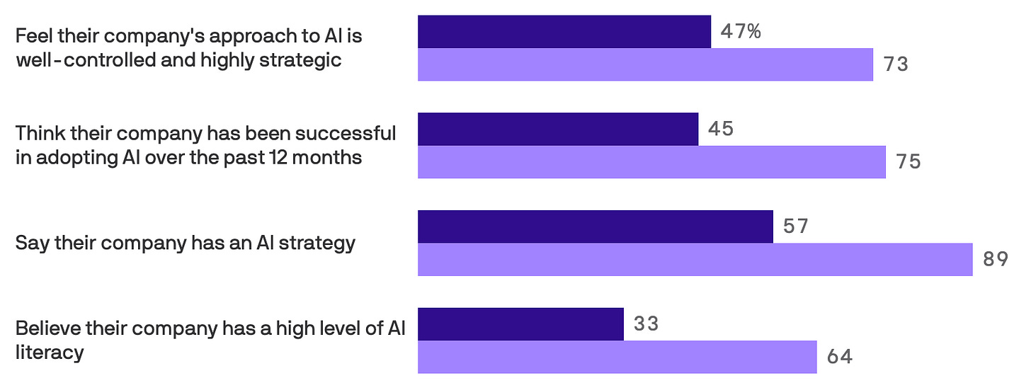 A new survey of 800 executives and 800 employees reveals a major disconnect in AI adoption at work. While 75% of execs think their rollout is a success, only 45% of employees agree. Nearly 60% of execs are job-hunting for more AI-forward companies, yet 41% of younger workers admit to quietly resisting AI tools altogether. Poor implementation, fear of job loss, and unreliable tools are deepening tensions. One CEO bluntly summed it upâ We're all sick of the chatbots.â