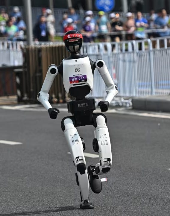 The same week Ace made headlines, 21 humanoid and bipedal robots completed a half-marathon in Beijing, covering 21 kilometers on the same course as human runners. Some stumbled. Some needed resets. But they finished.