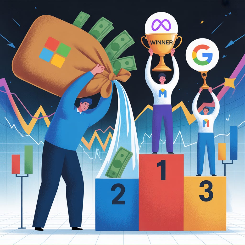 Meta is monetizing AI immediately, Google is reinforcing its ads + cloud flywheel, and Microsoft is still converting massive AI investment into consumer-level profit.