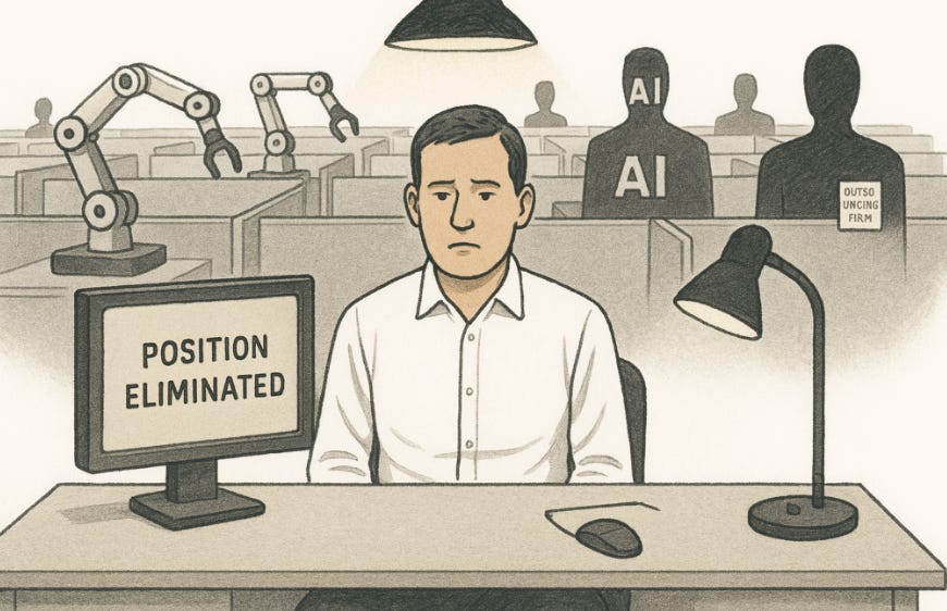 The corporate ladder is collapsing from the middle, and AI is pulling the rungs out faster than workers can climb.