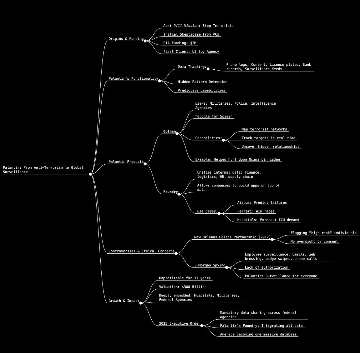 Palantir is one of the most advanced and controversial players in this space, but not he only one. Its platforms like Gotham, Foundry, and AIP (Artificial Intelligence Platform) are built to fuse siloed datasets into unified, analyzable networks. Using Temporal modeling (how behavior evolves), Network analysis (who interacts with whom), Anomaly detection (spotting deviations from routine), and Machine learning (training models to forecast “next likely actions”)