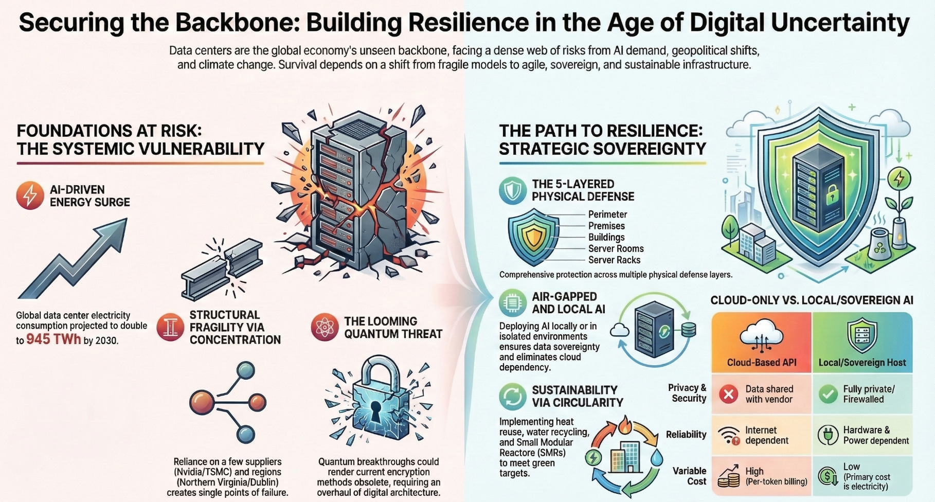 The implications are layered and serious. Geopolitical conflicts can now take down banking, payments, and logistics overnight; the concentration of AI inference into a few cloud providers means a single policy dispute or physical attack ripples into enterprise workflows worldwide; and Iran explicitly targeted Amazon’s Bahrain data center for the company’s support of “U.S. military and intelligence activities,” signaling that data centers are now considered legitimate military targets, a precedent with enormous consequences for any business or government running critical workloads in geopolitically sensitive regions.
