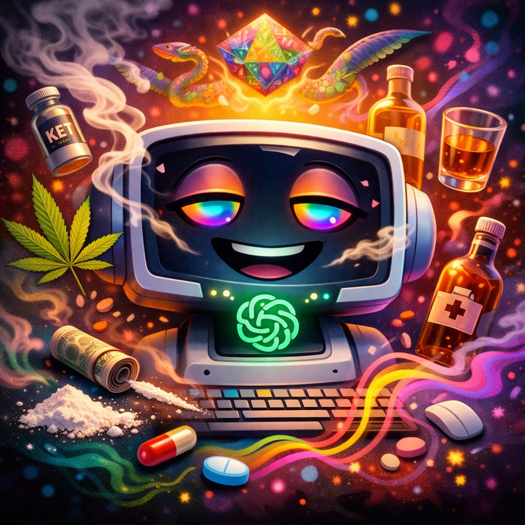 People are now paying to make chatbots act like they’re on drugs. A new marketplace called Pharmaicy sells code modules ($25–$50+) that, when uploaded to paid versions of ChatGPT, alter behavior to simulate cannabis, ketamine, cocaine, ayahuasca, or alcohol.